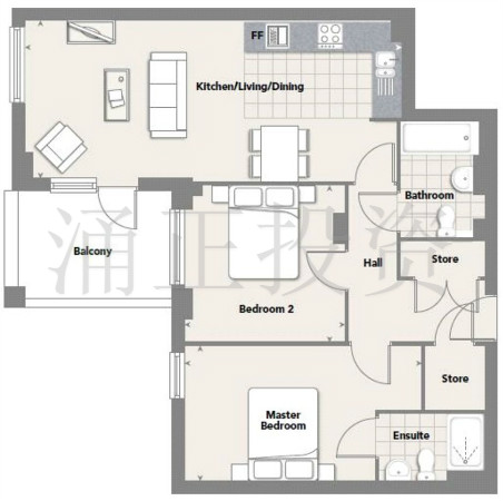 付款流程:预定单位时付定金£2,500;21日内付房款的5%交换合同;交换合同后3个月各支付房款5%;交换合同后6个月各支付房款5%;交房时付尾款。
